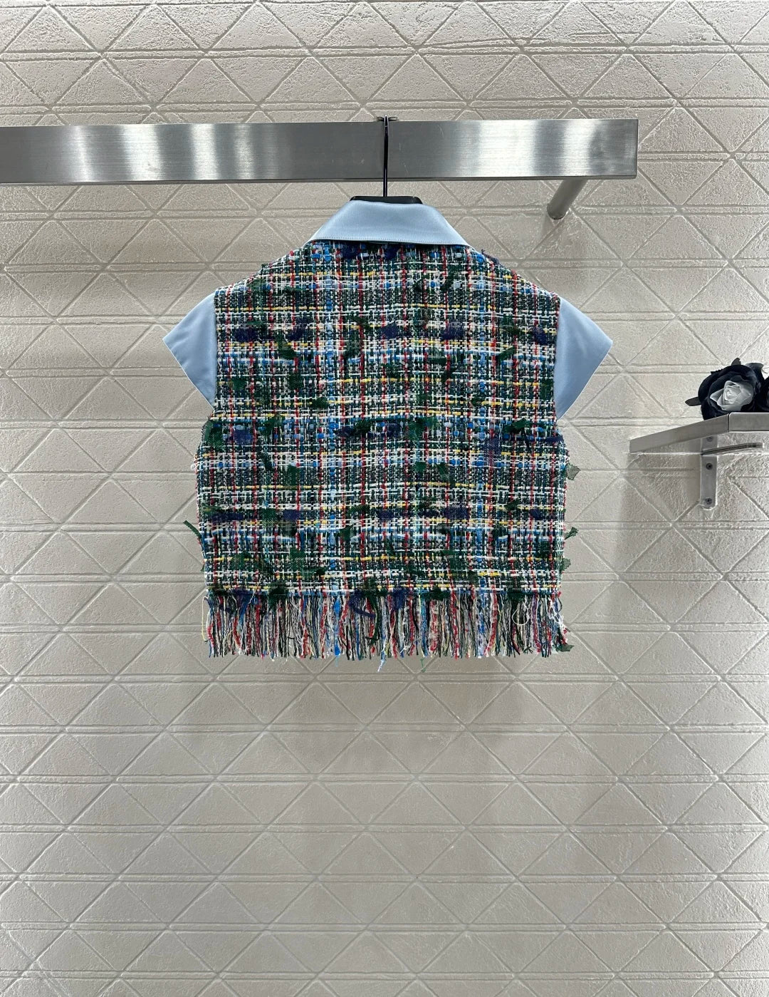 Chiffon Blouse Collared Patch Short Sleeve Top Woven