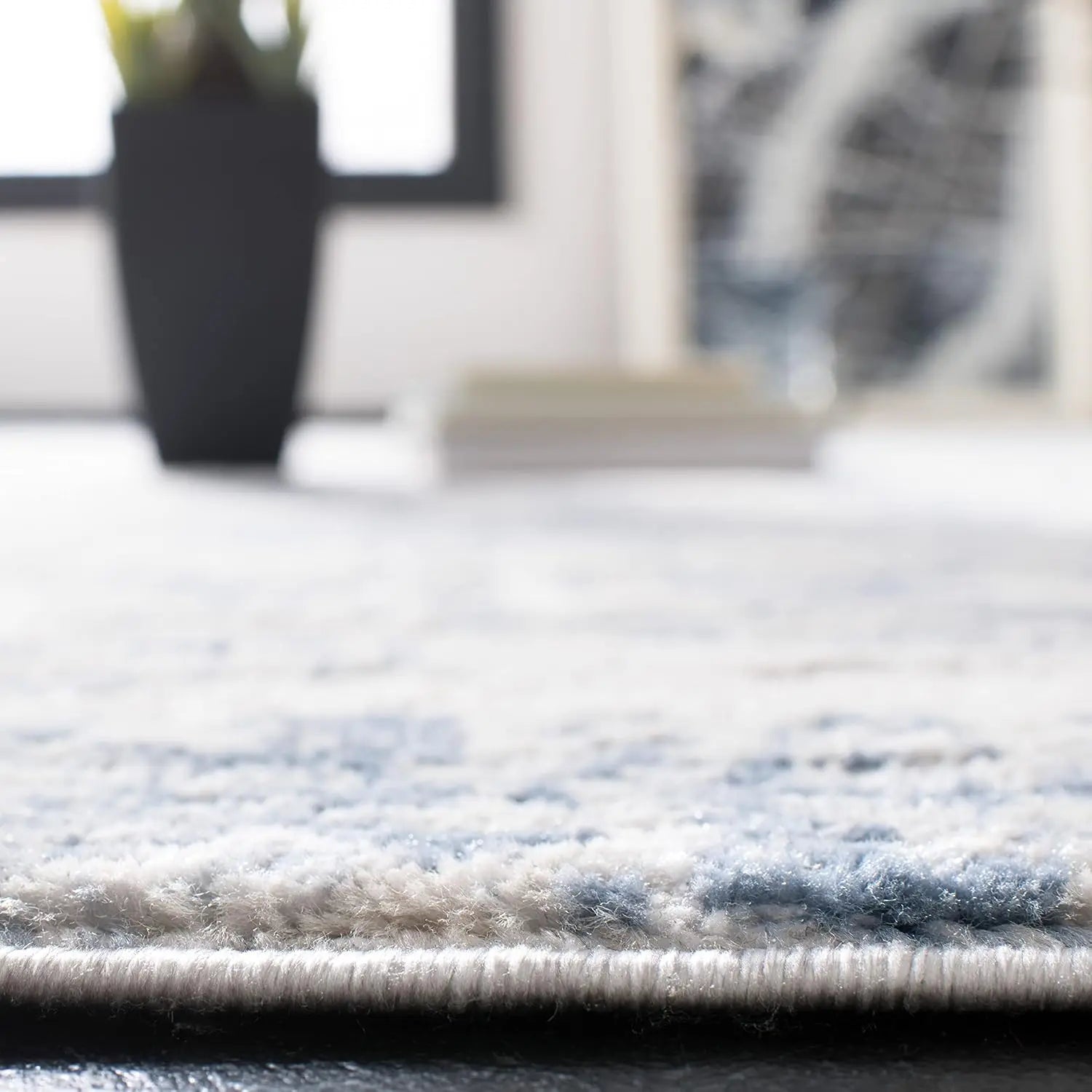 8ft x 10ft Ivory & Blue Rug Modern Abstract Design