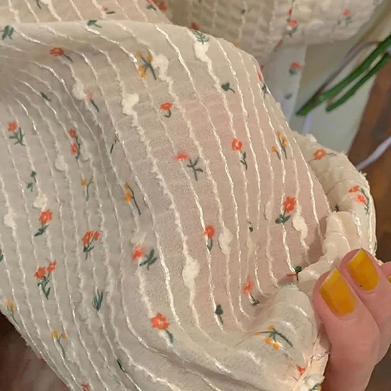 Chiffon Shirts Women Summer Floral Printing Girls Long Lantern Sleeve