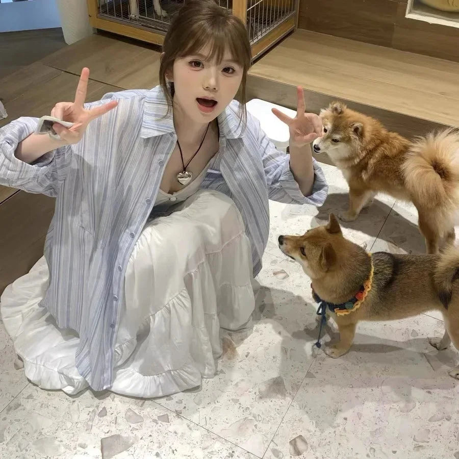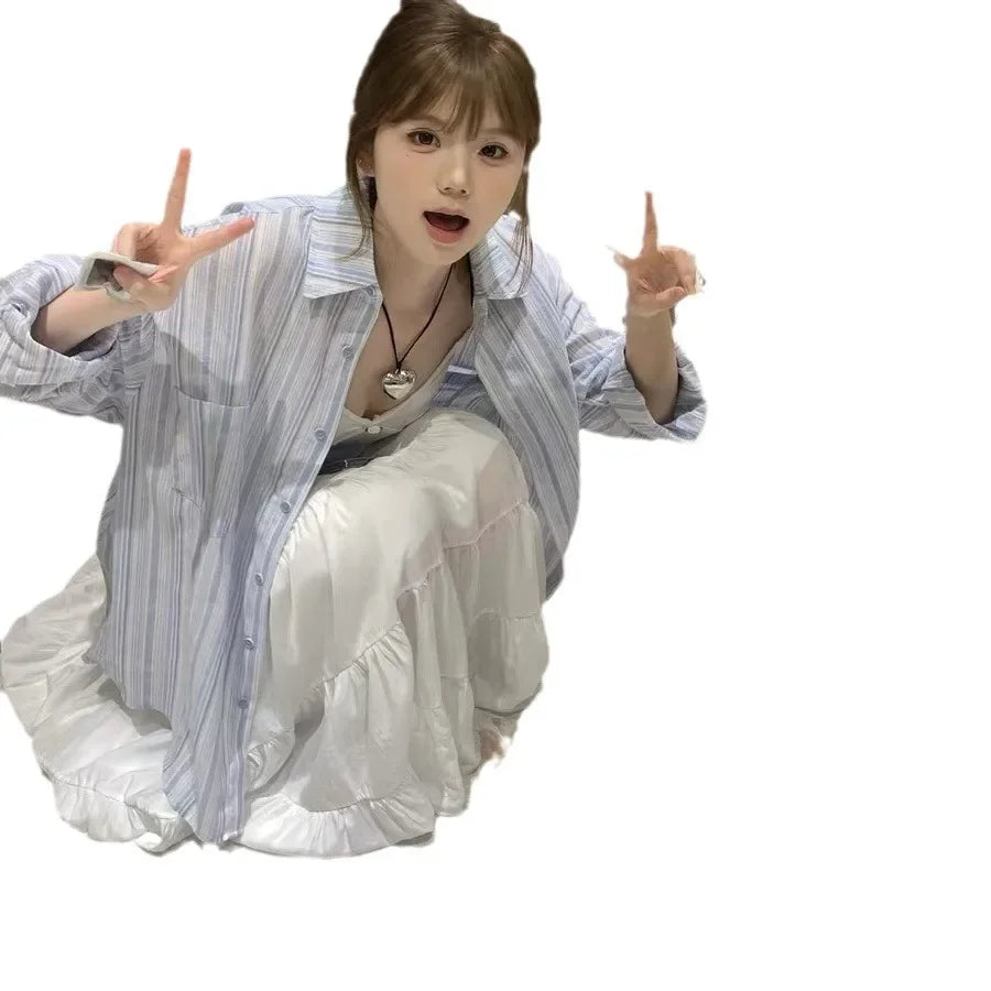 Cross-Border Factory Export Xiong Cardiganblue Striped Top