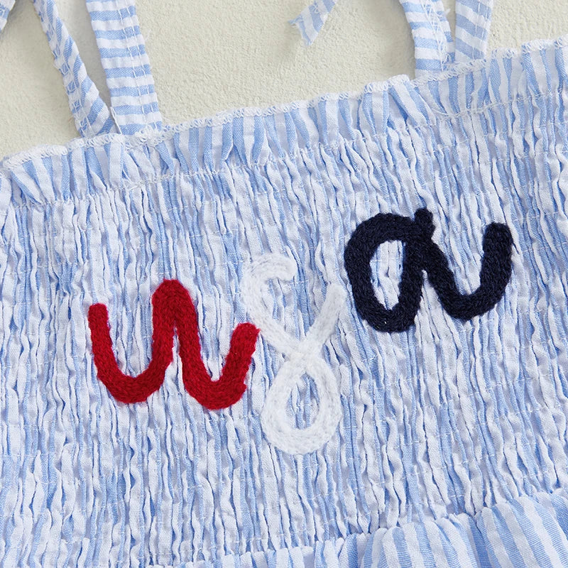 Cute Baby Girl Sleeveless Dress with Adjustable Spaghetti Straps Embroidered Letters