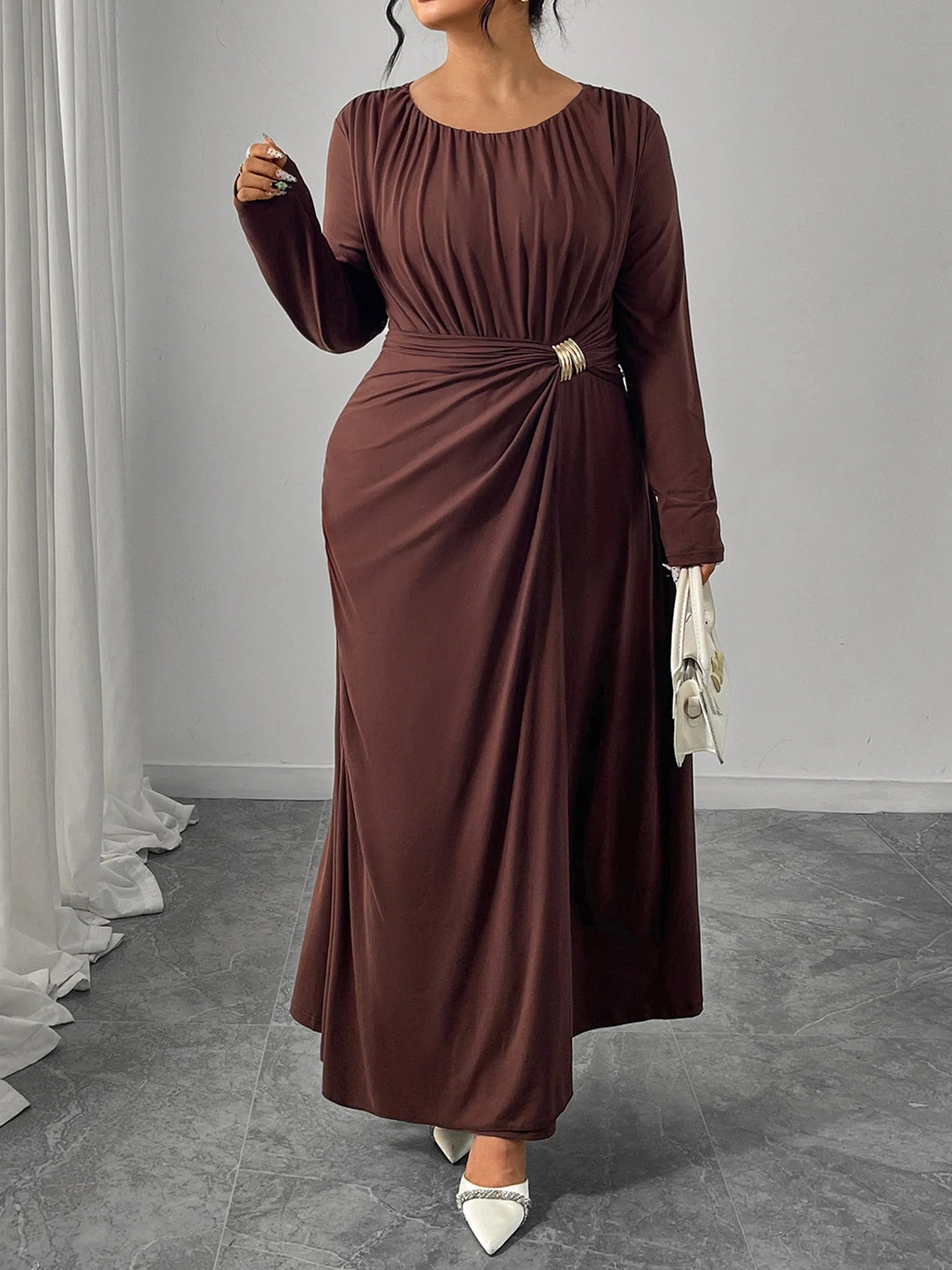 Elegant Plus Size Maxi Dress with Flattering Waist Cinching Detail and Stylish Long Sleeves