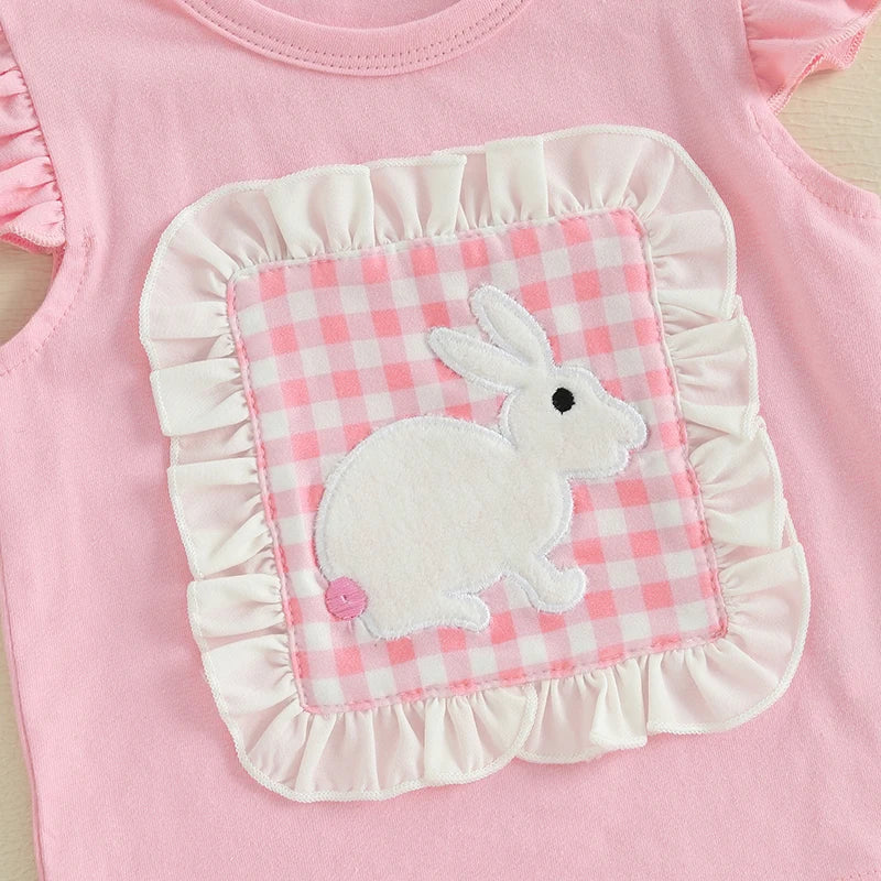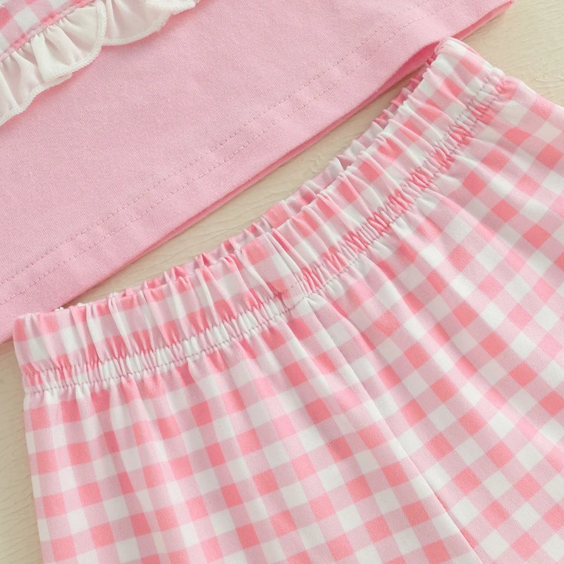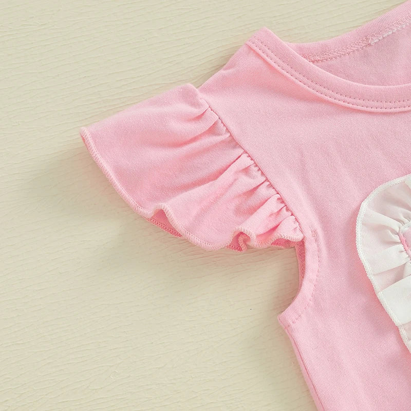 Girls Floral Print Ruffle Sleeve Top and Denim Shorts Set with Bow Detail -