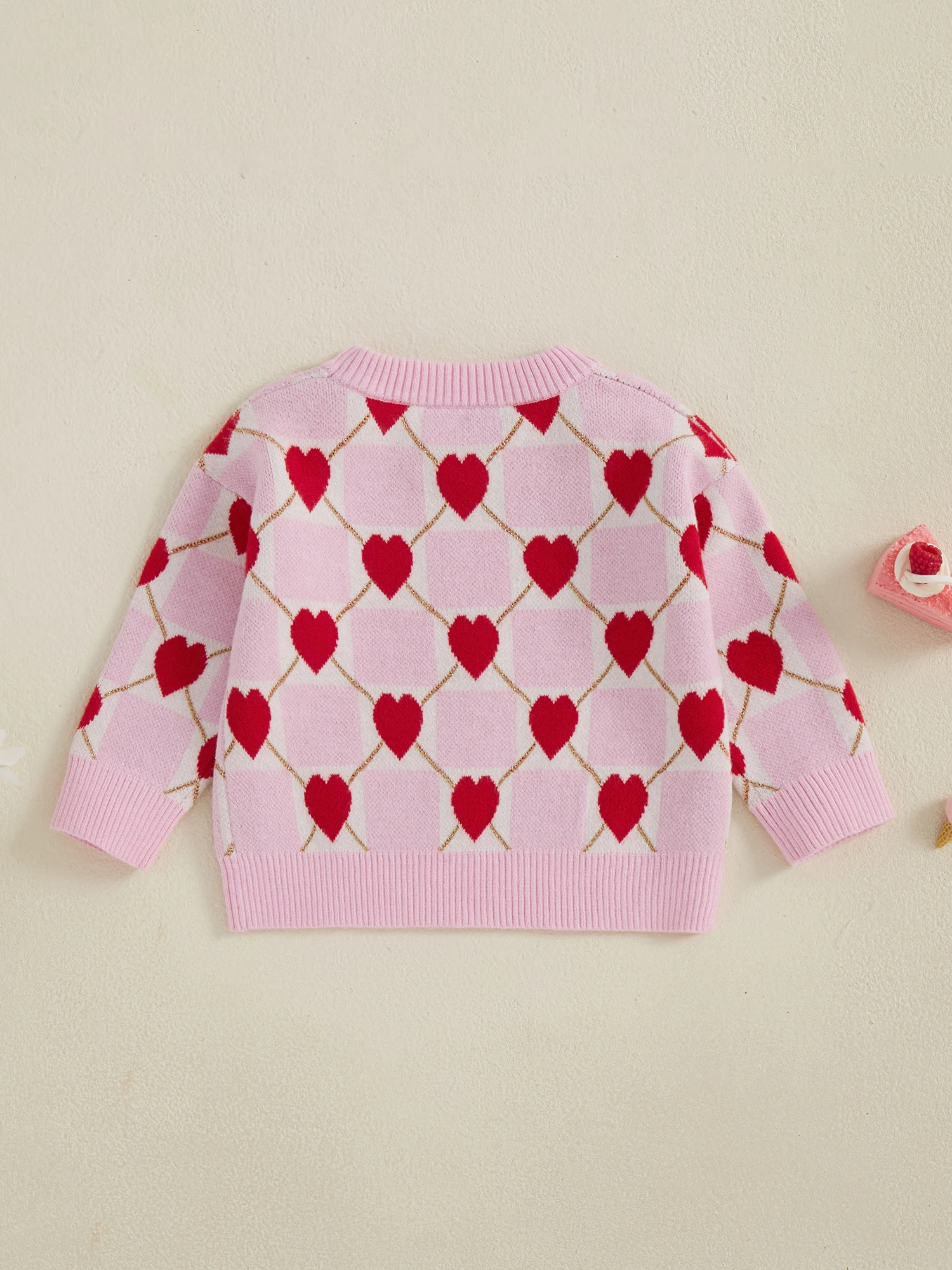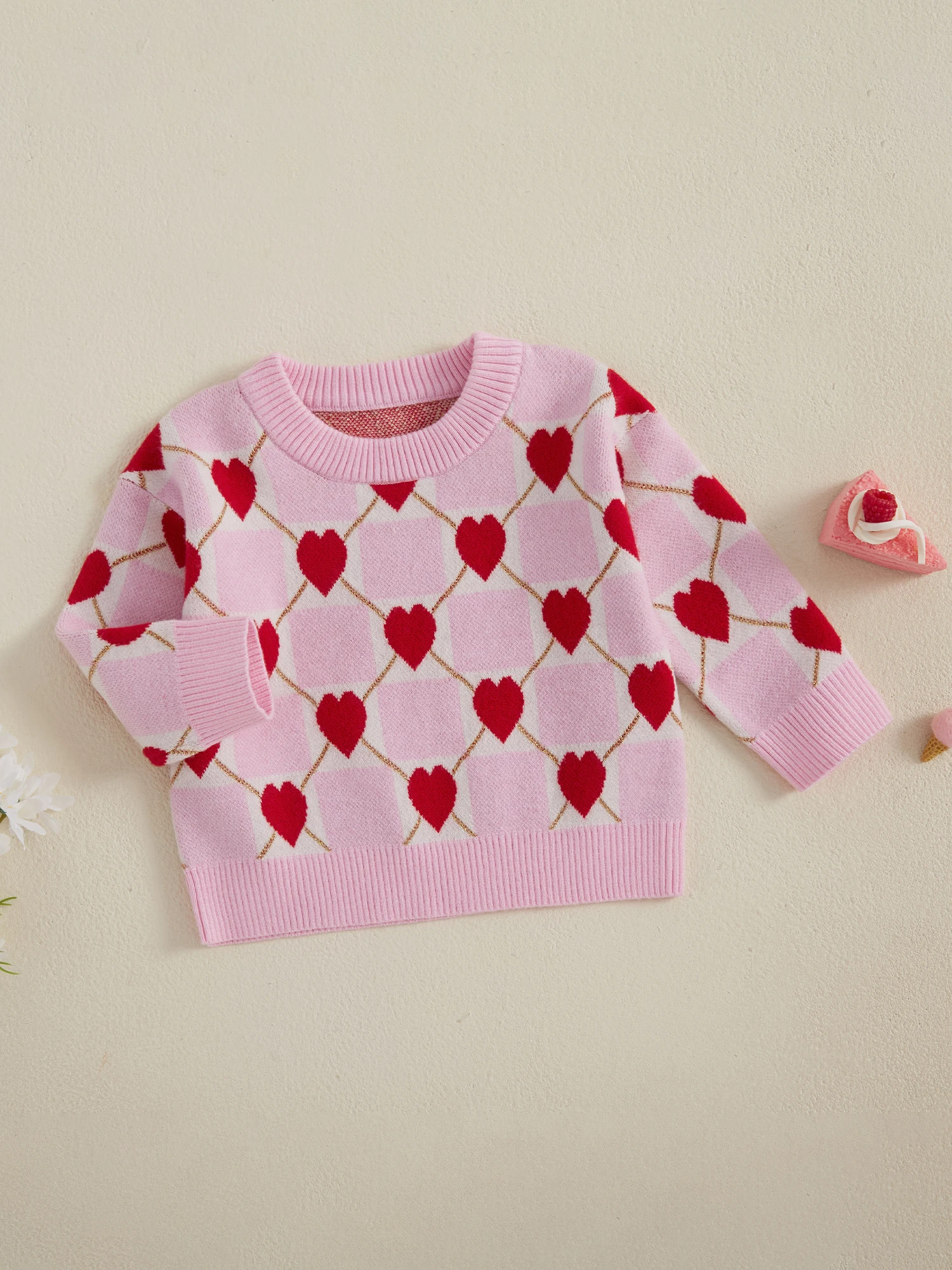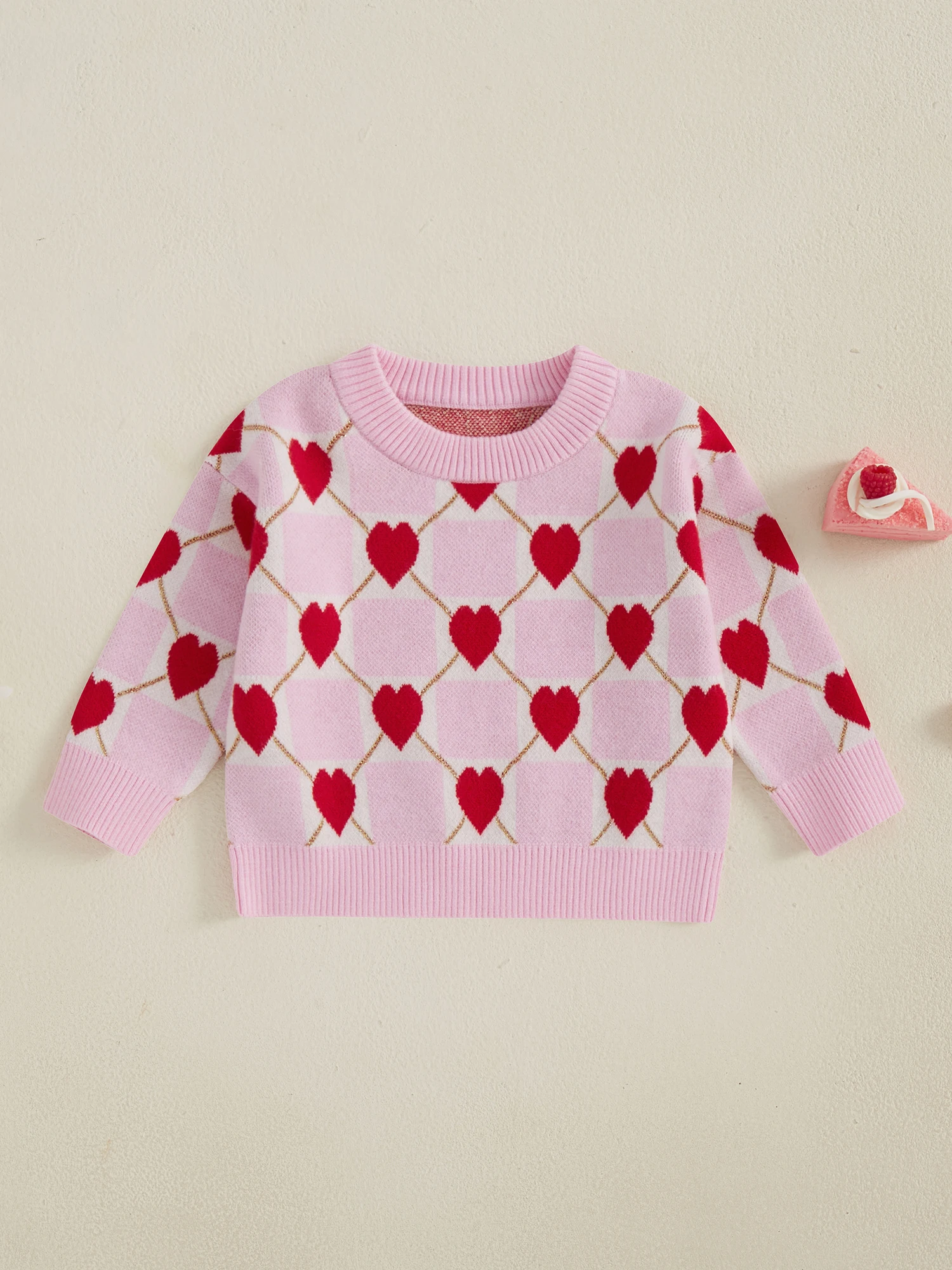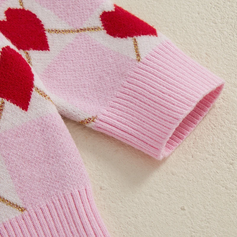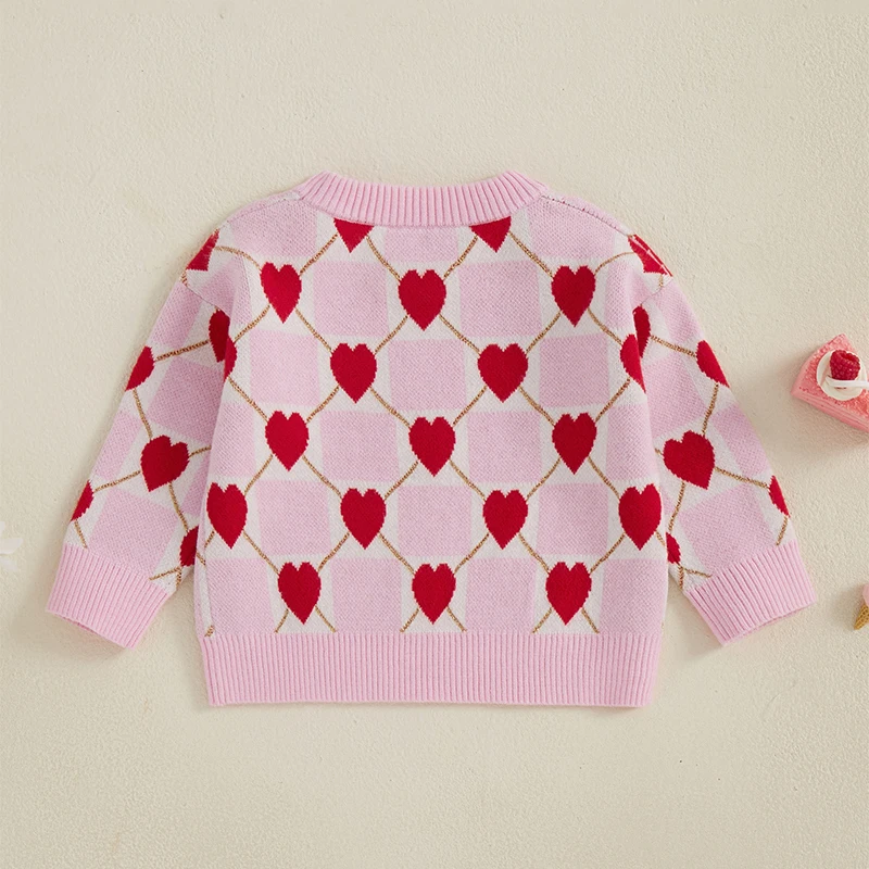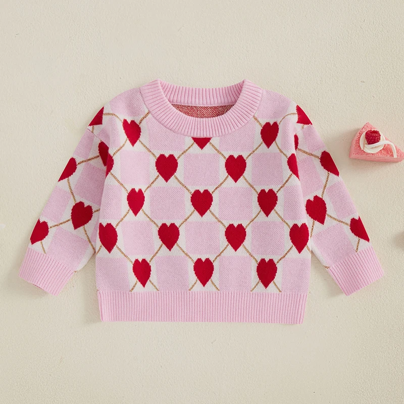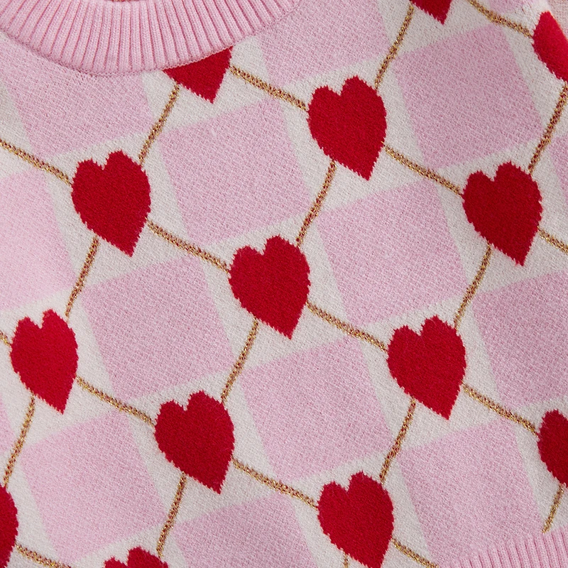 Toddler Girls Knit Sweater Long Sleeve O Neck Heart Checkerboard Print Pullover KnitwearSize (cm)