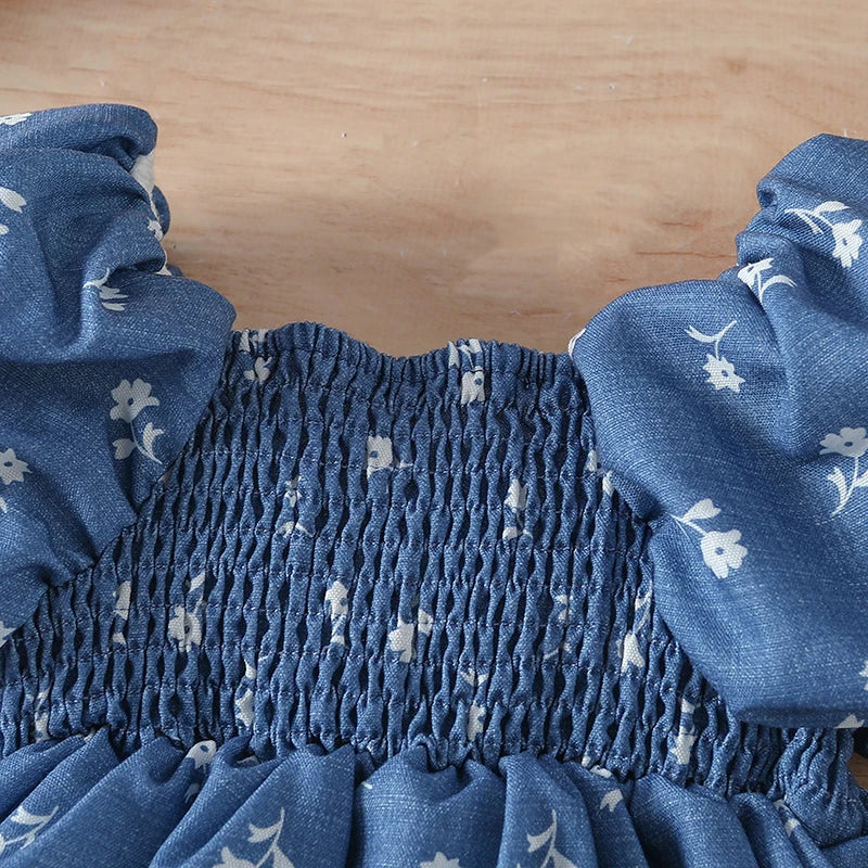 Girls Summer Floral Print Off Shoulder A-line Dress with Short Puff Sleeves -