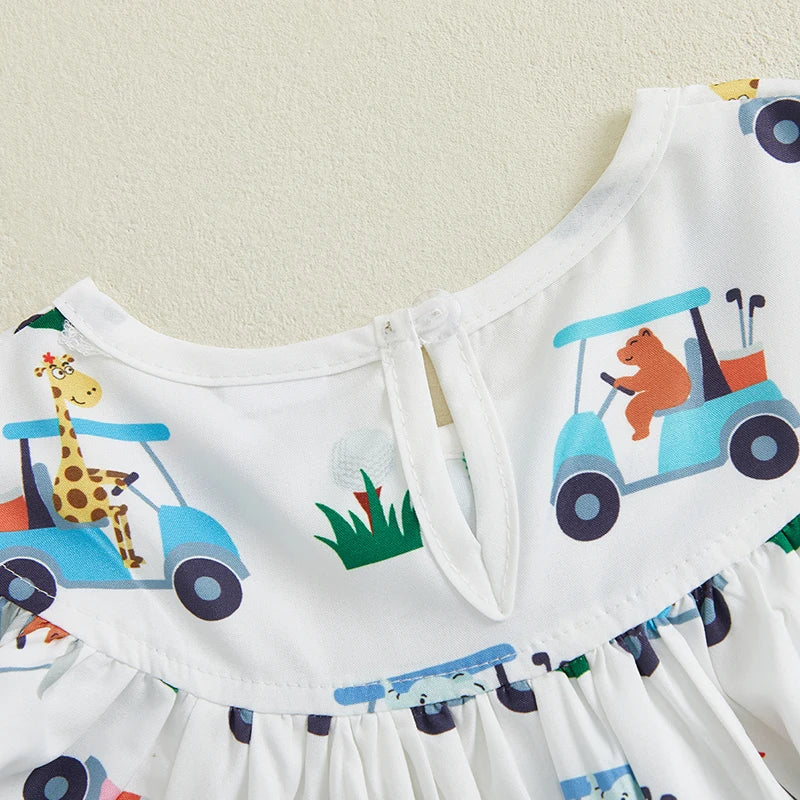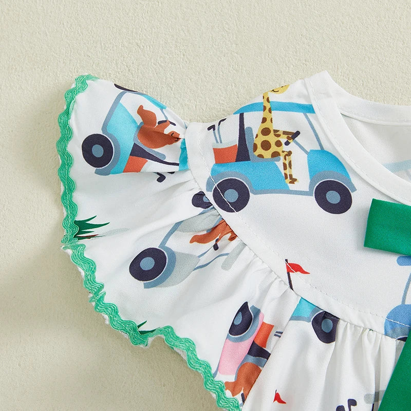 Girls Summer Sleeveless Round Neck Floral Print A-line Dress with Bow Detail and Ruffle Hem