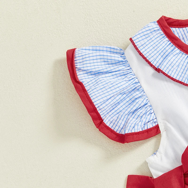 Independence Day Toddler Girl Dress with Plaid Bows and American Flag