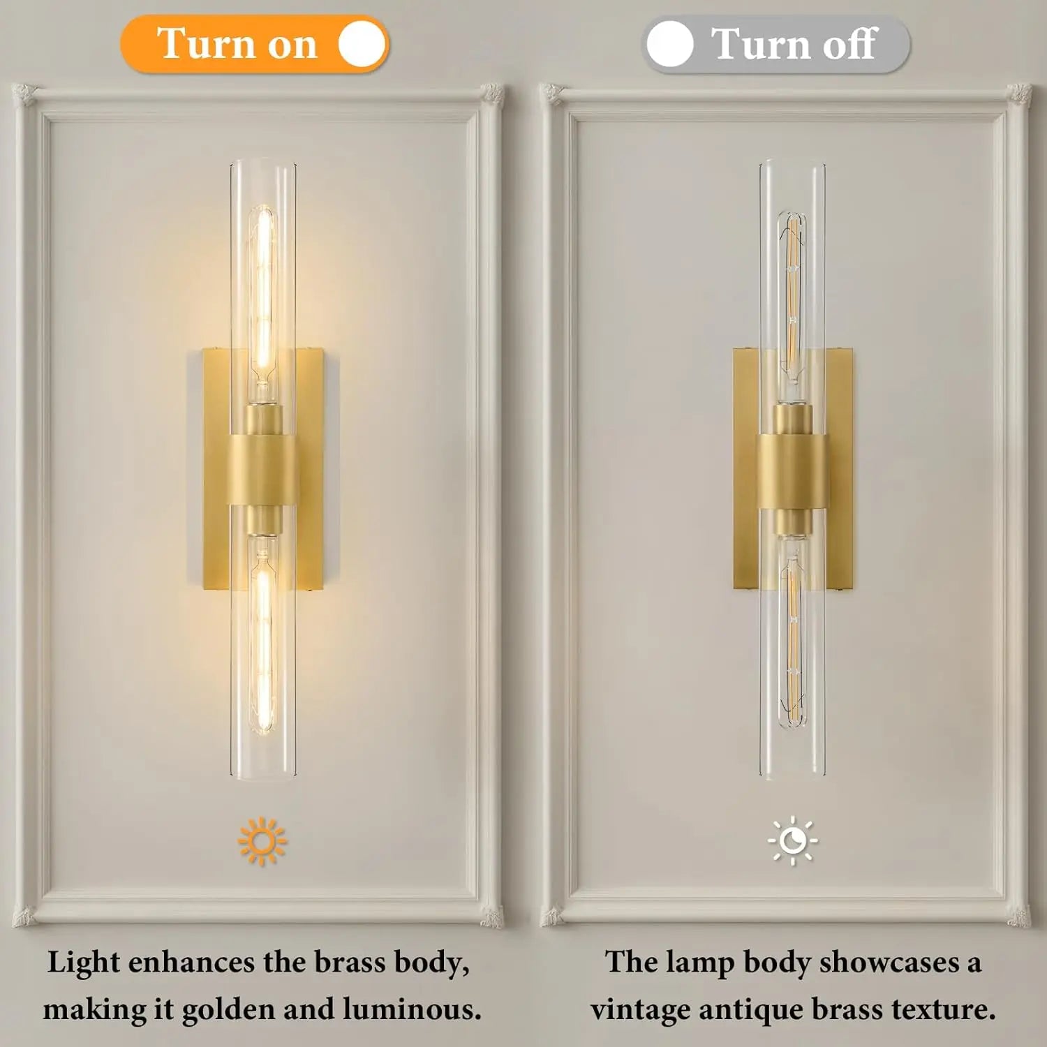 Illuminate your space with a sleek, dimmable wall sconce set featuring clear glass tubes for a clean, contemporary glow.