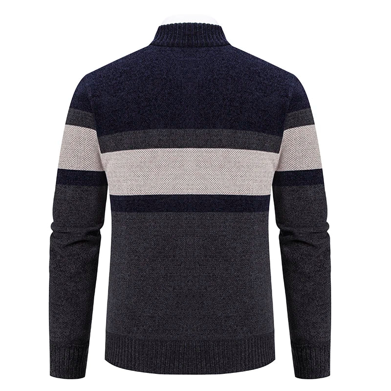 Mens Thickened Fleece Cardigan Hoodie With Zipper Mandarin Collar