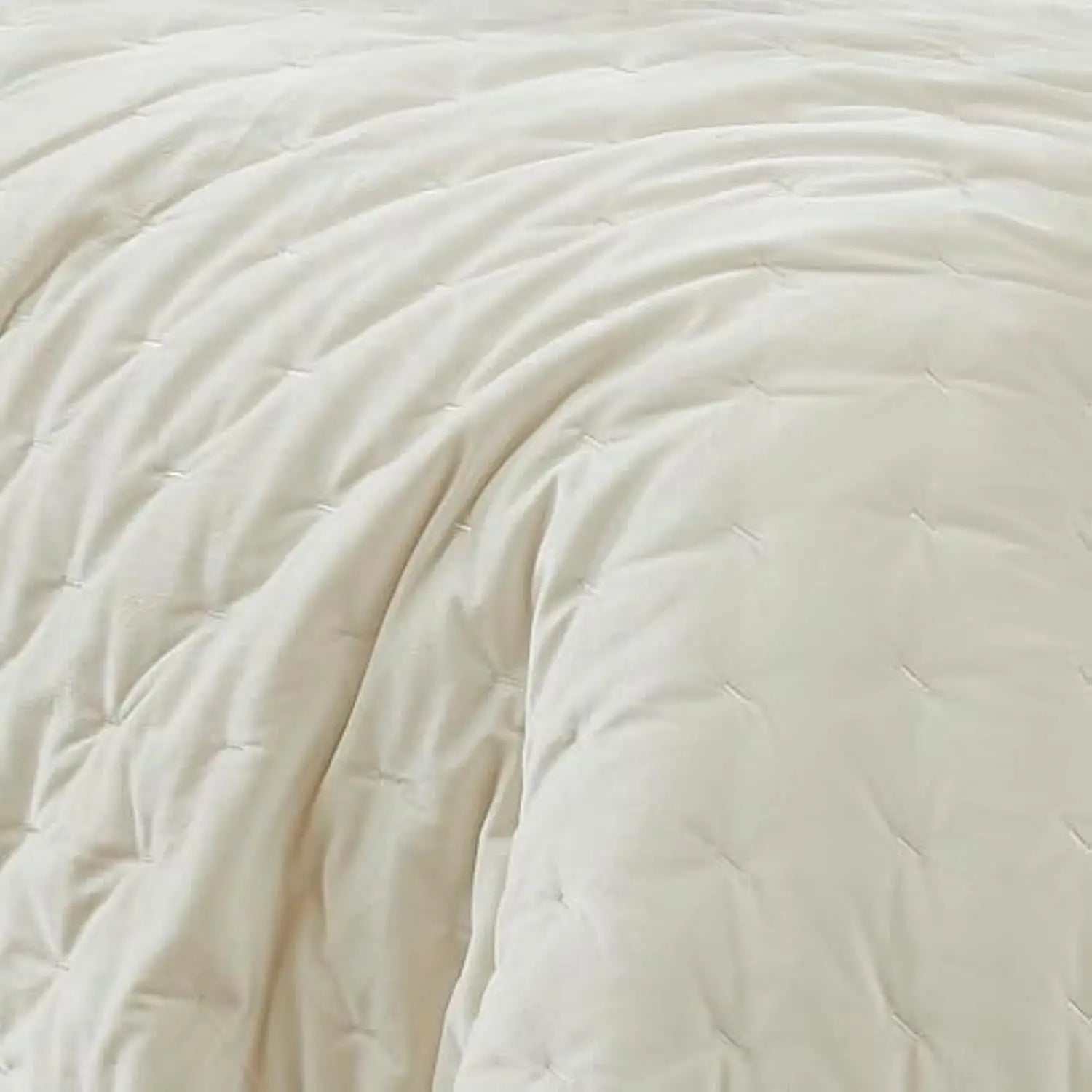 - Quilt Set, 3-Piece Cozy Velvet Bedding with Matching Shams, Embroidered Stitch Design