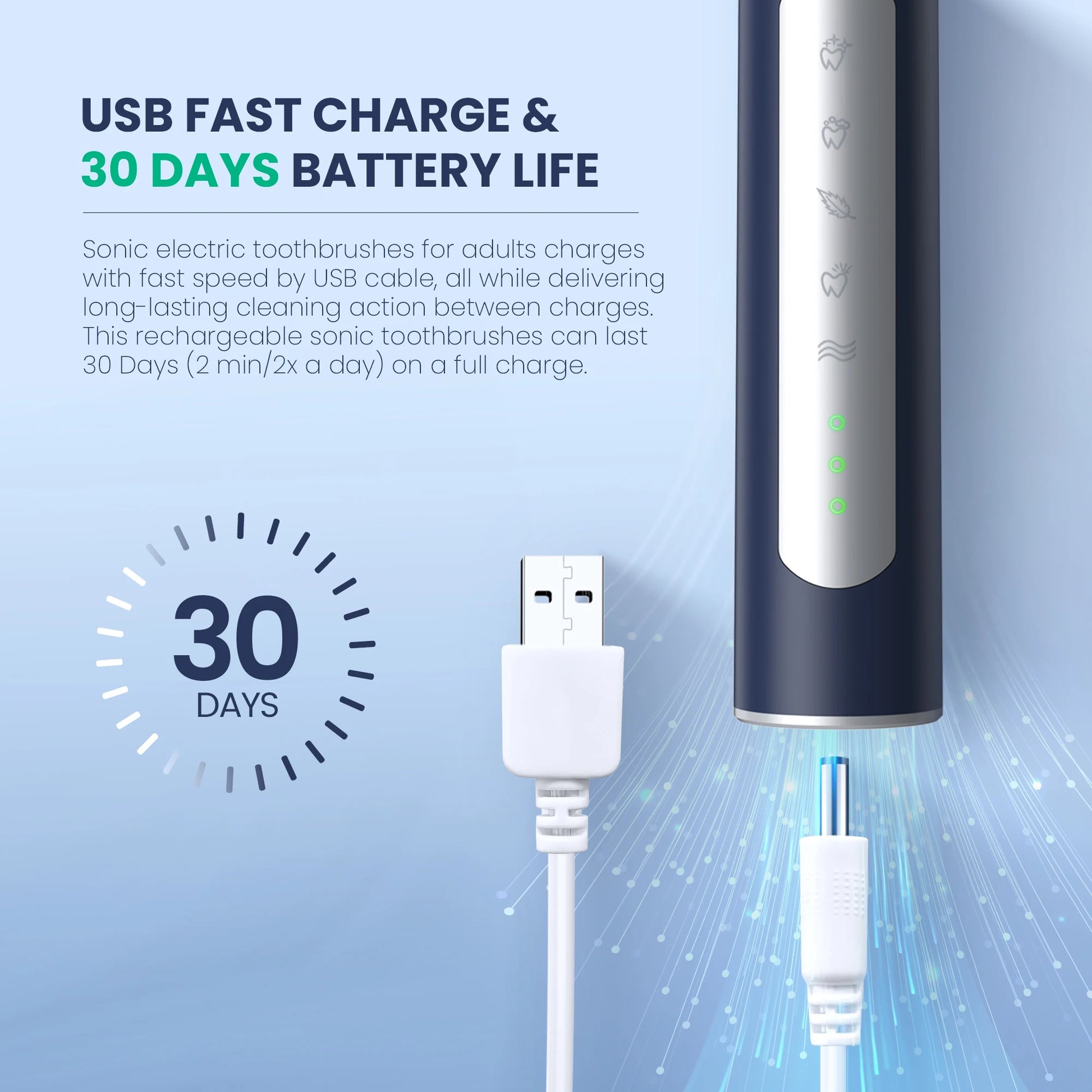Sejoy JS10-1 Electric Sonic Toothbrush with 10 pcs Replacement Heads Rechargeable Waterproof Electronic Tooth Brushes