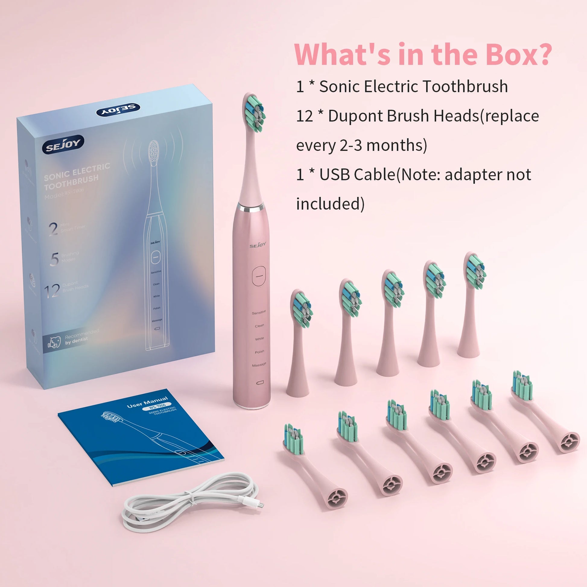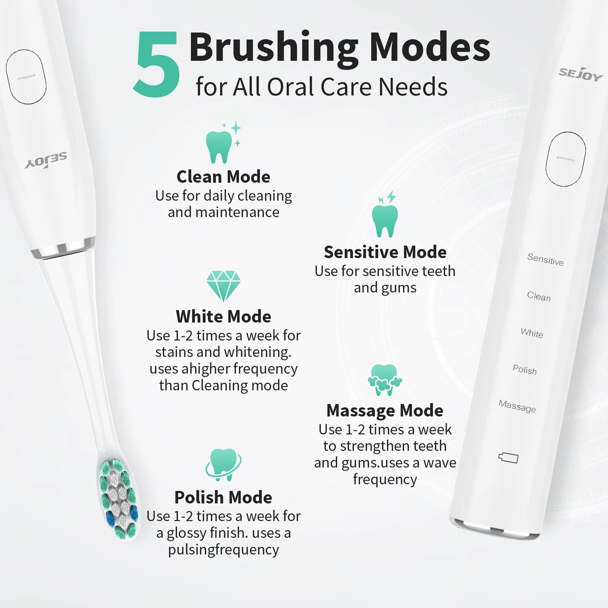 Sejoy Sonic Electric Toothbrush for Adults Dental Rechargeable 5 Cleaning Modes Sonic Toothbrush Personal Care Appliances