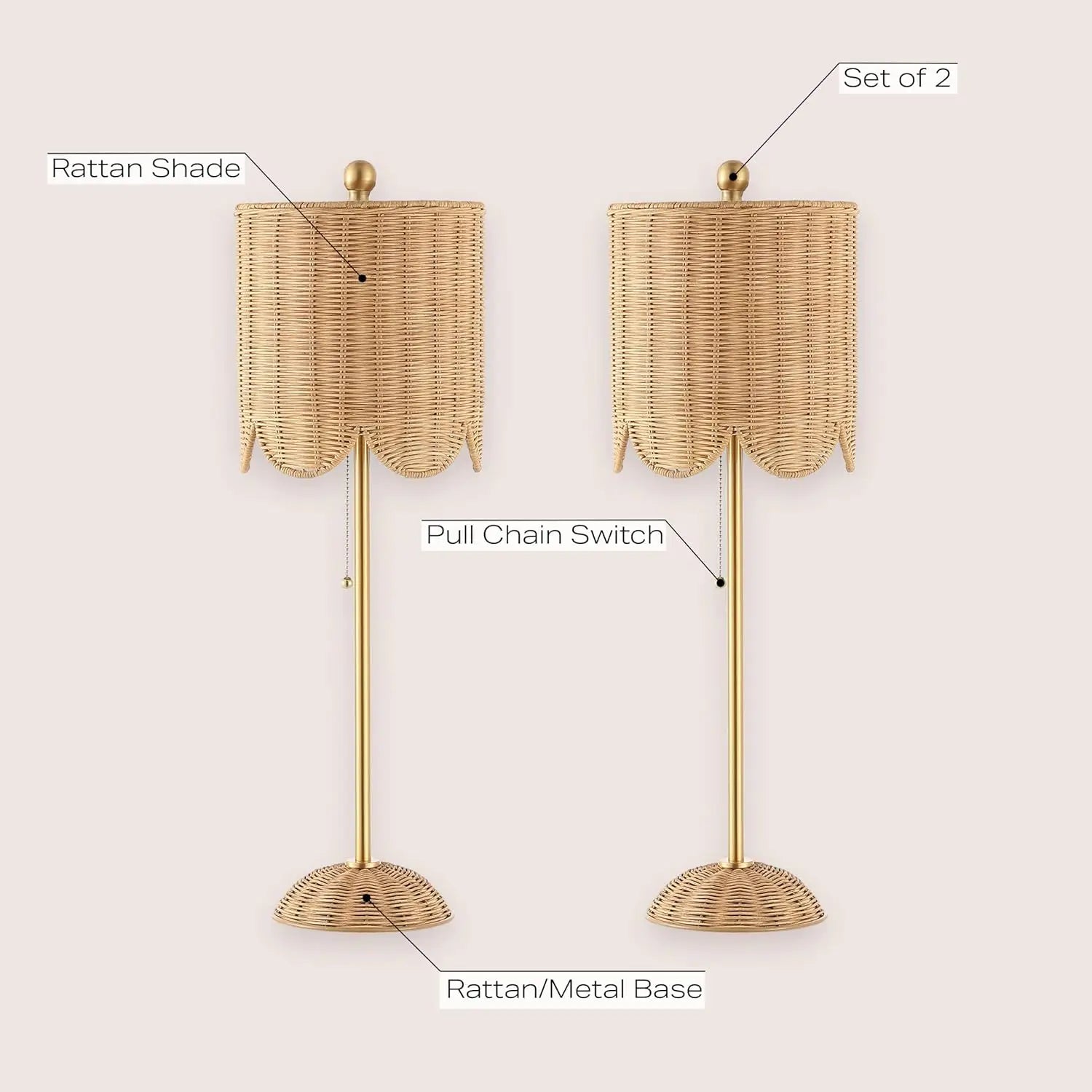 Coastal Bohemian Rattan and Iron Scalloped LED Table Lamps