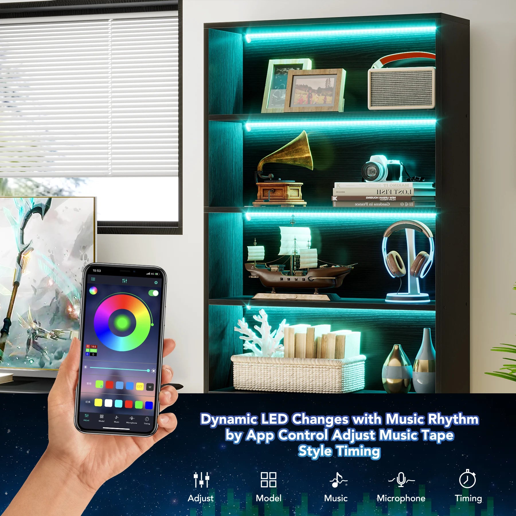 Tribesigns 70.8” Large Bookcases Organizer with LED Lights, Heavy Duty Library Bookcase