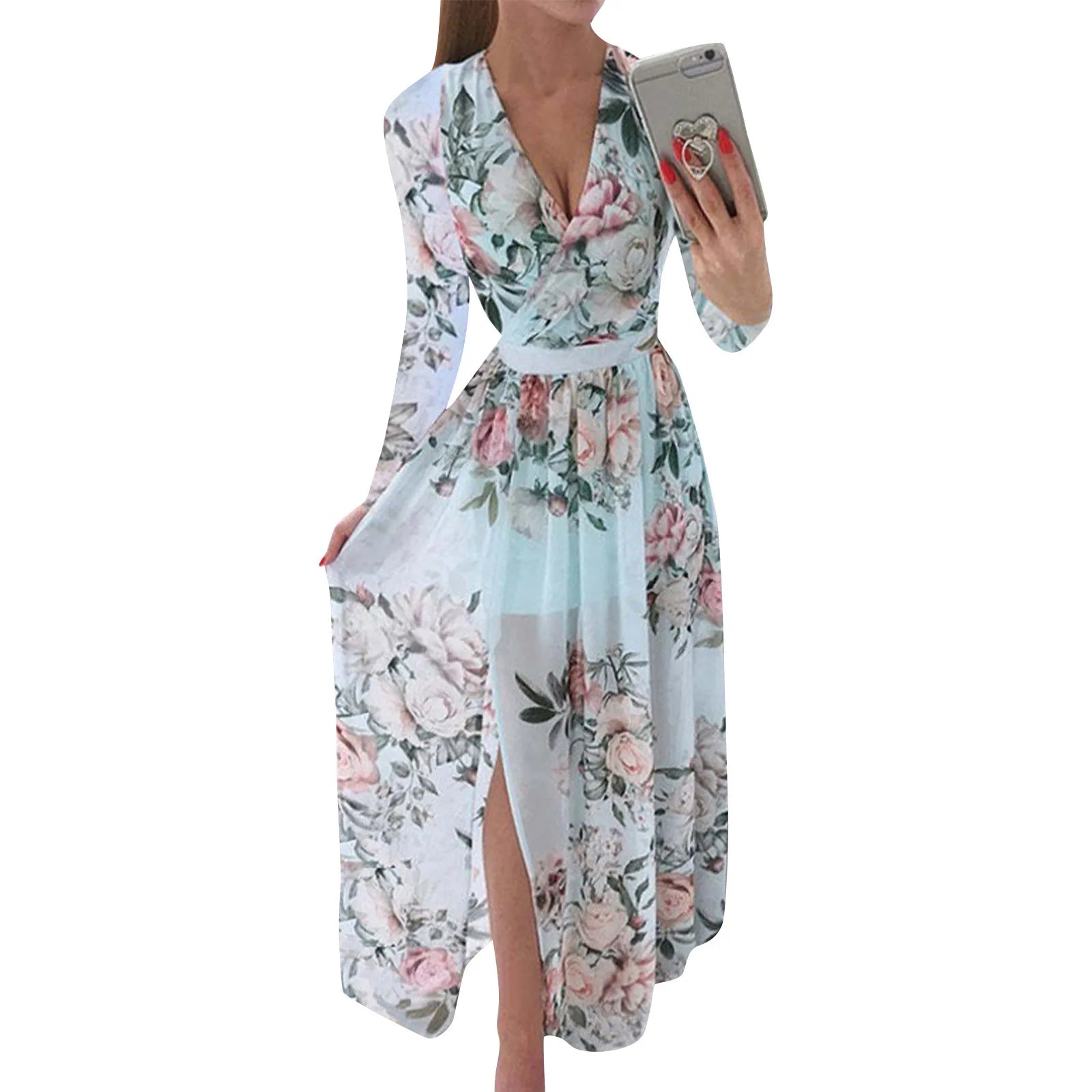 Women floral Chiffon Flower Dress trends new in Ladies Elegant V Neck short Sleeve