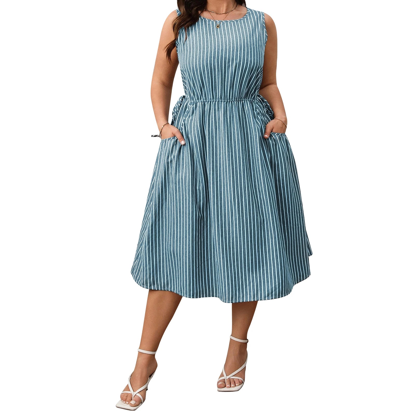 Women Plus Size Sleeveless Dress Summer Casual Floral Print A-Line