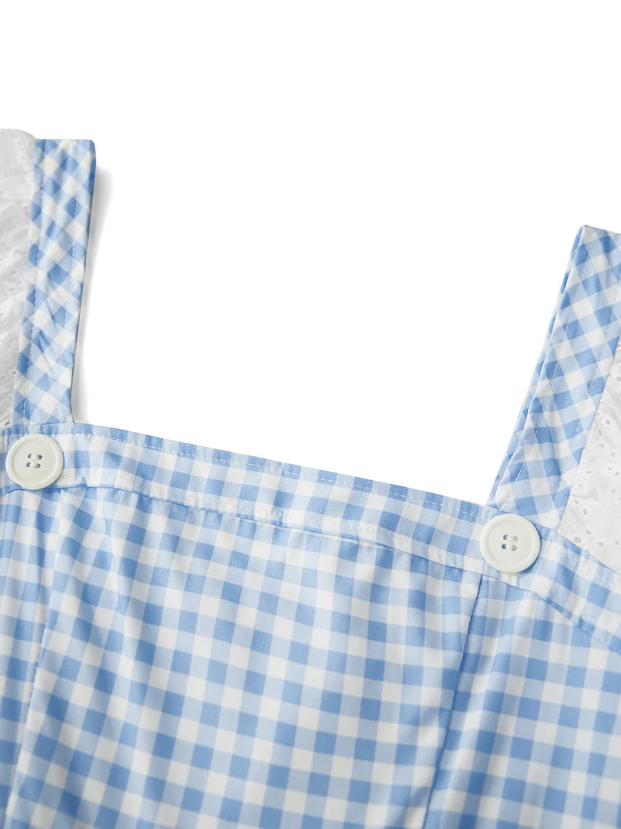 Women s Halloween Movie Character Costumes Plaid Print Short Sleeves Dress