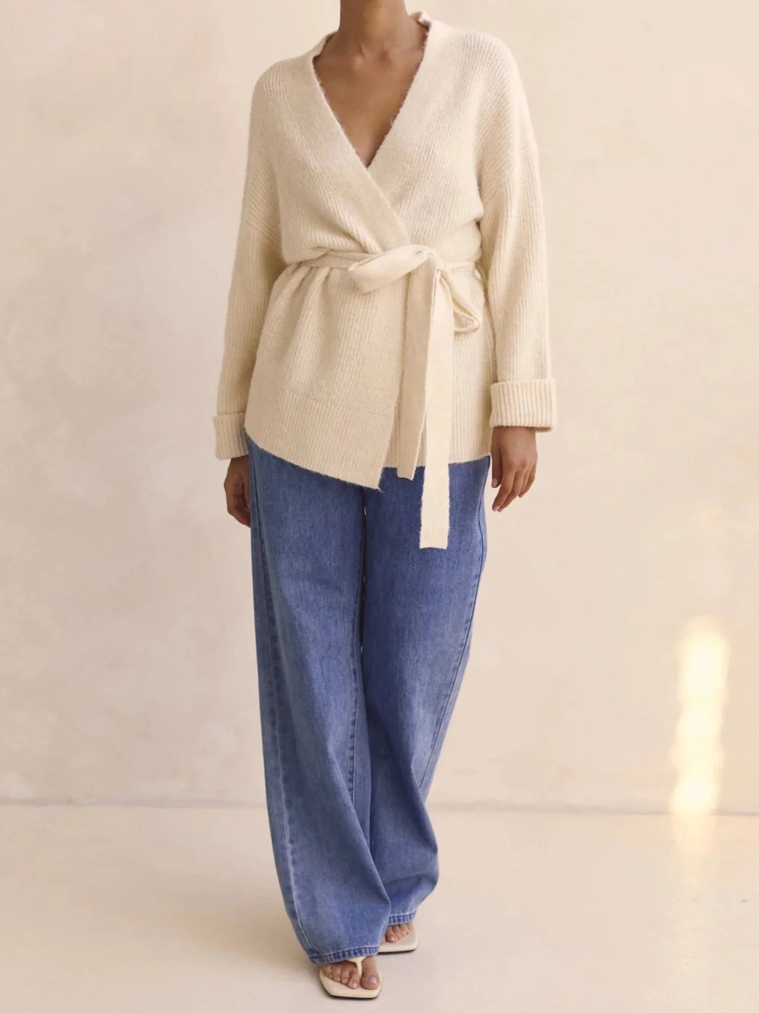 Effortless, versatile layering you can reach for year-round, with a chic V-neck and belt for a polished silhouette.