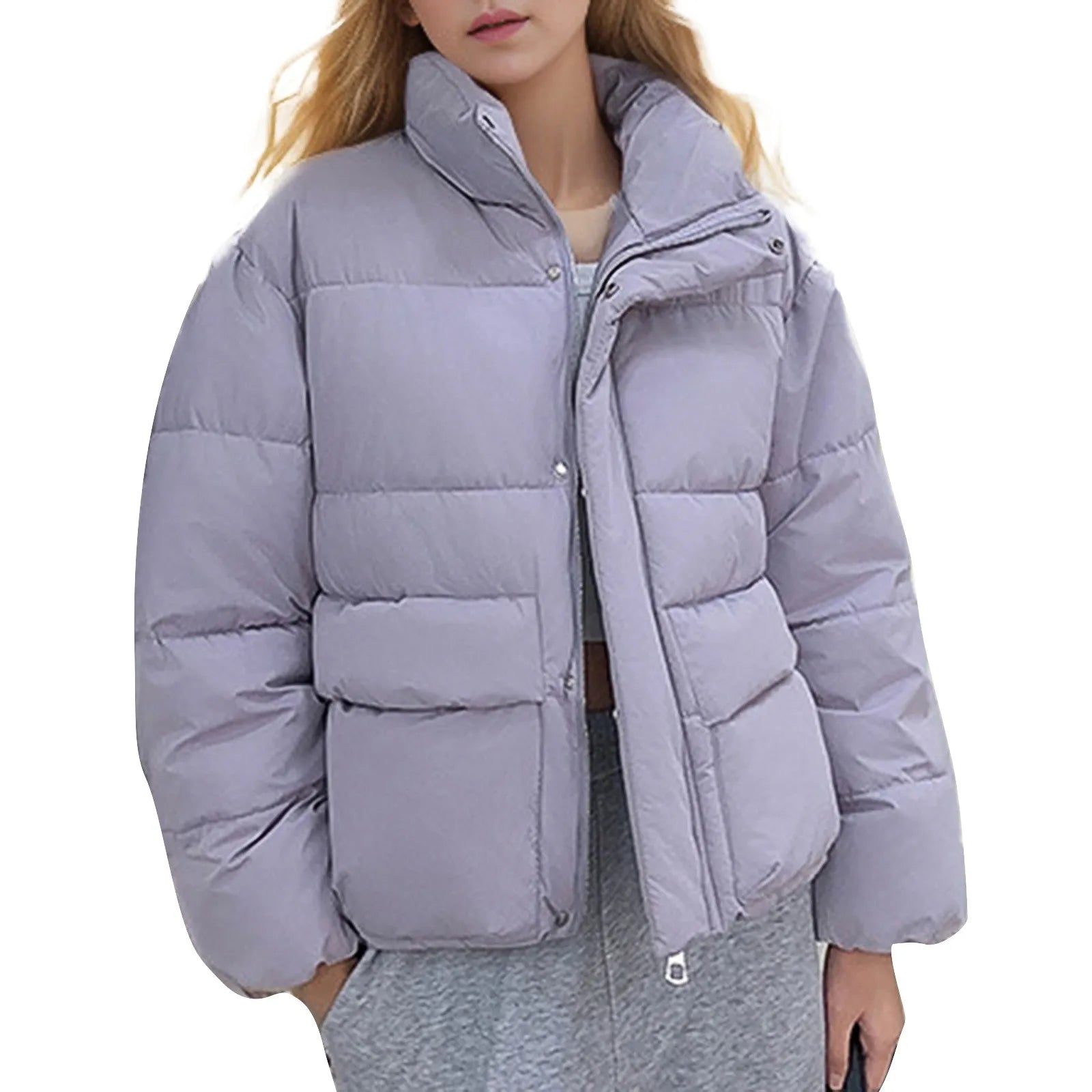Women's Down Cotton Coat Short Stand-up Collar Autumn/winter Solid Color