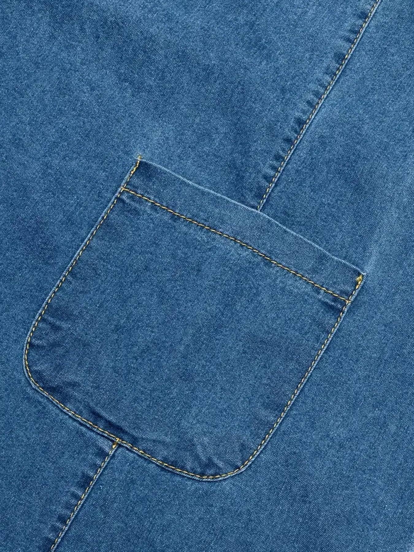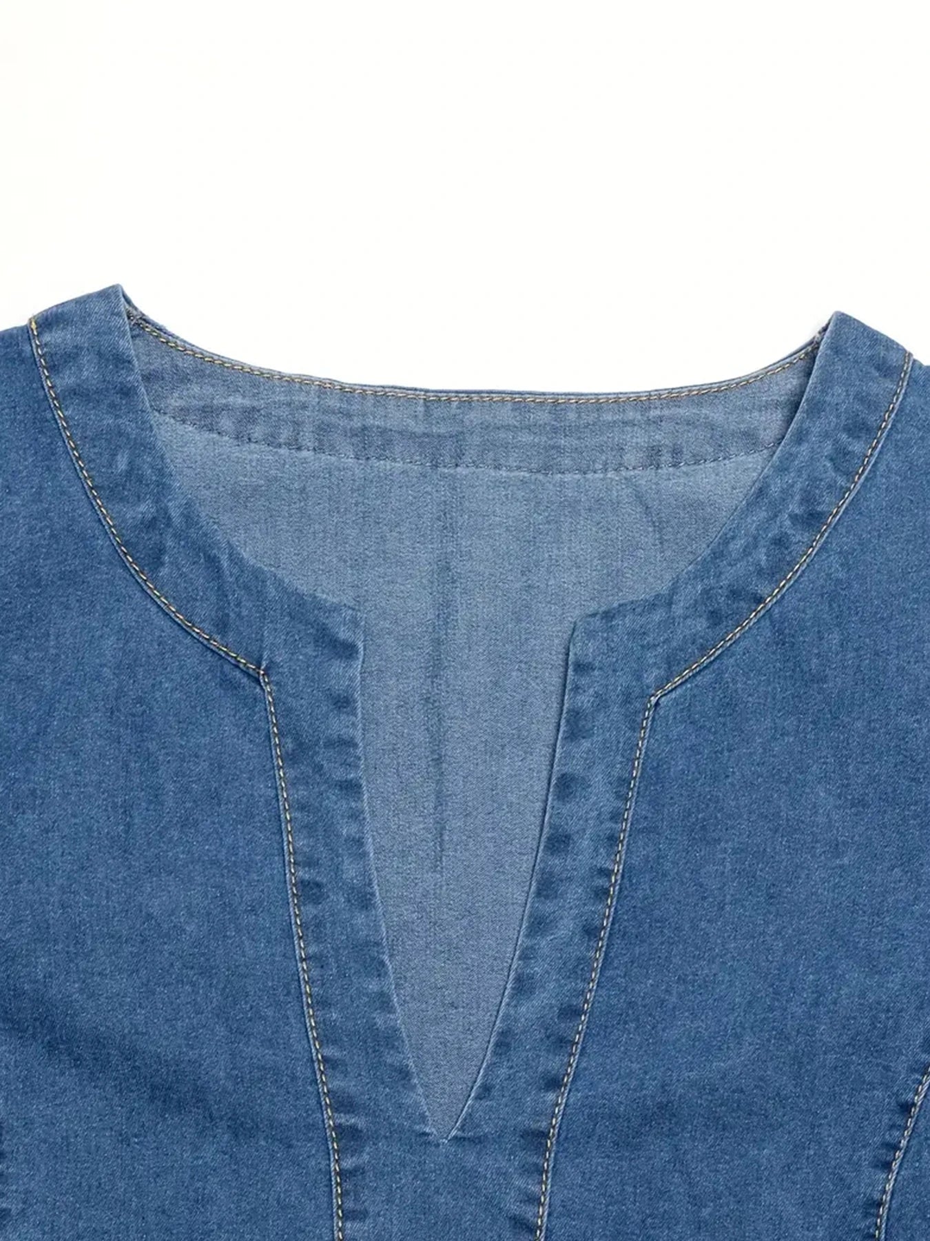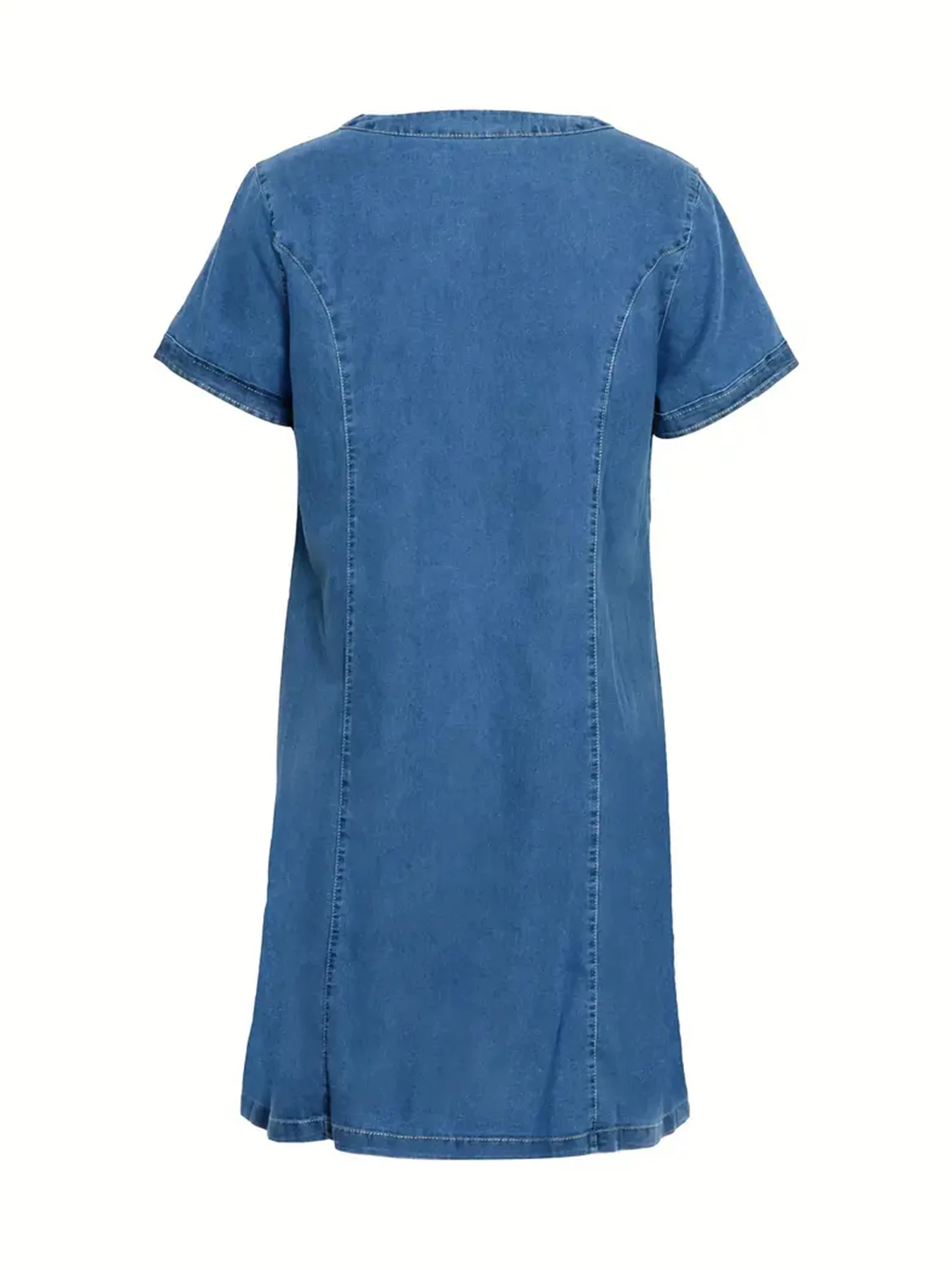 Women's Fashionable Casual V-Neck Short Sleeved Denim Dress with Pockets,