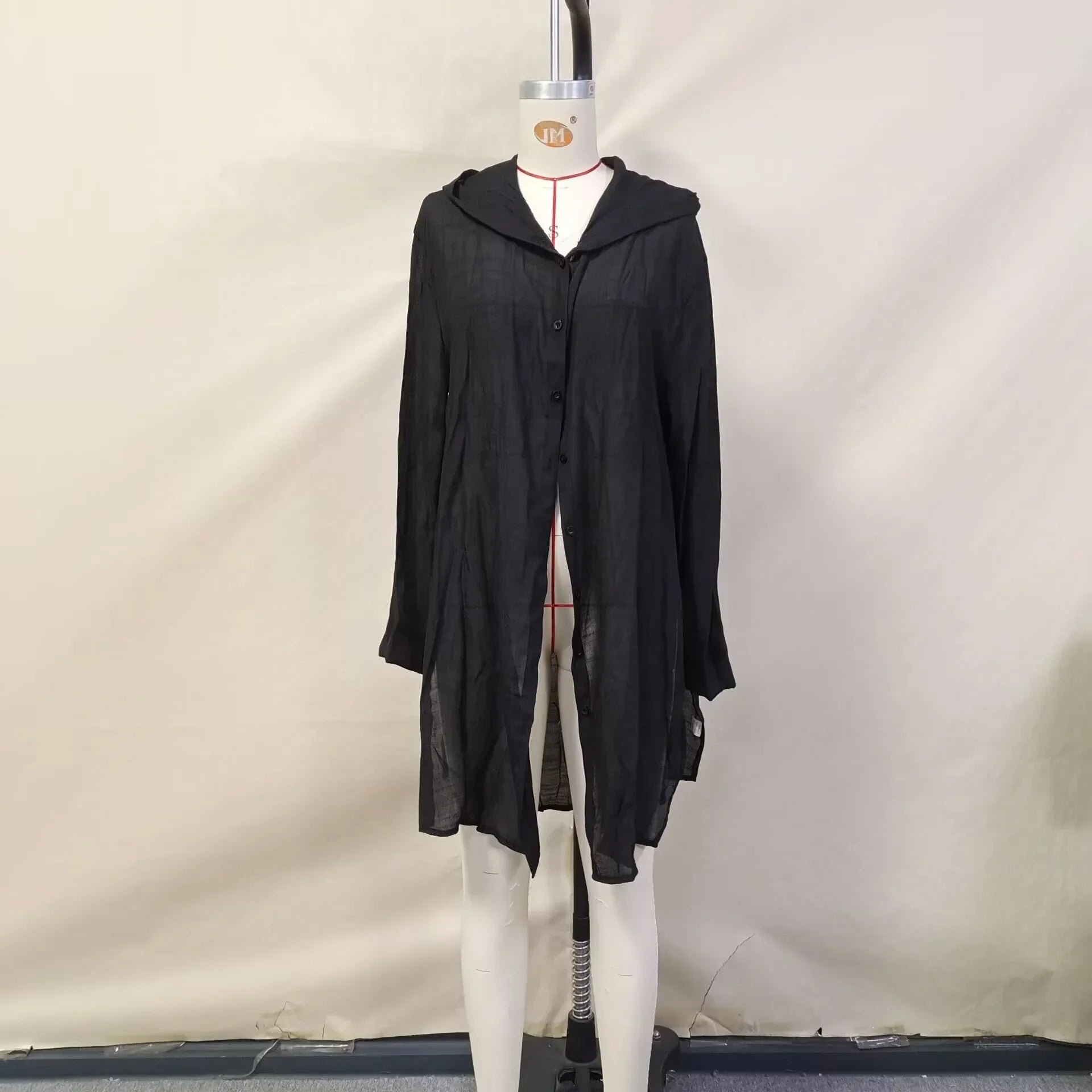 Step into sun-soaked days with effortless polish for you in this women's long sleeve button-down tunic dress beach cover up.