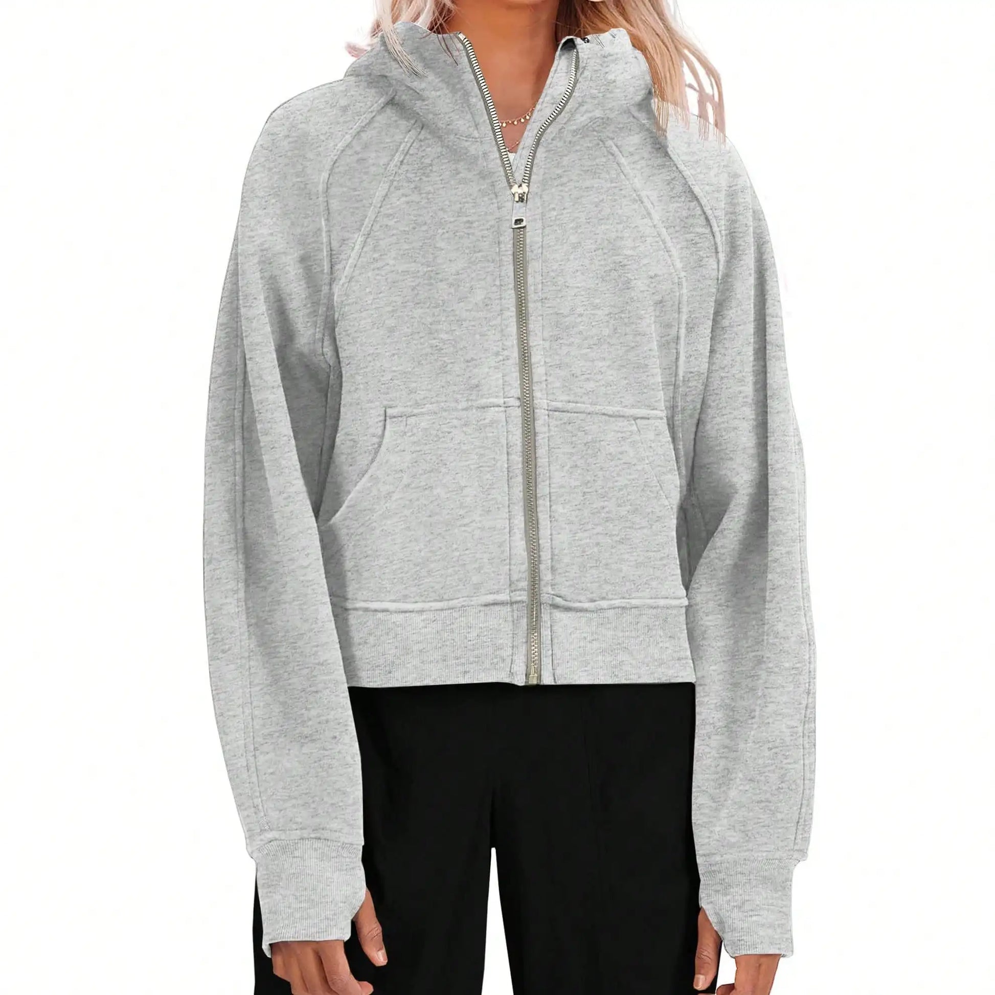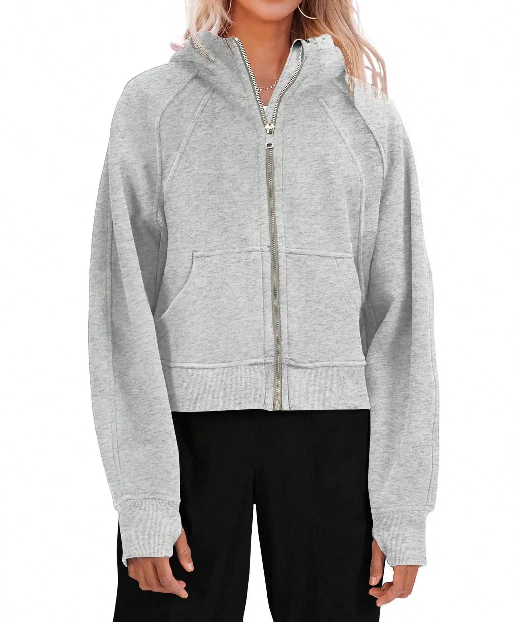 Women's Y2K Zip Up Crop Hoodie Fleece Lined Oversized Sweatshirt With Thumb Holes Streetwear Winter Aesthetic